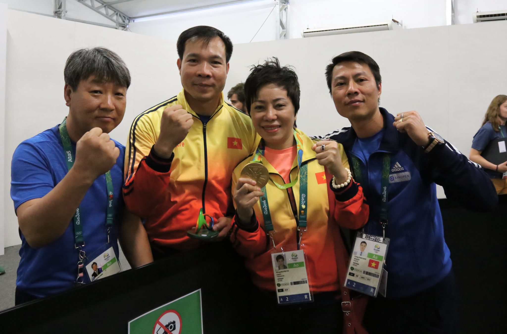 Xạ thủ Hoàng Xuân Vinh không thể có được thành công như hôm nay nếu thiếu một trong hai người đã gắn bó cùng anh nhiều năm qua: HLV trưởng tuyển bắn súng Nguyễn Thị Nhung và chuyên gia người Hàn Quốc Park Chung Gun.