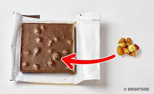 Nhưng trên thực tế, mỗi thanh chocolate thông thường, theo quy tắc chỉ chứa khoảng 3 - 5 hạt được đập dập hoặc nghiền nát mà thôi, hoặc không chúng sẽ được thay thế bằng loại hạt rẻ hơn.