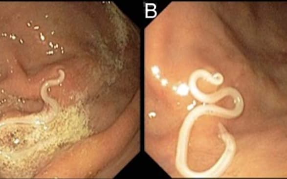 Khi các bác sỹ thực hiện nội soi thì phát hiện ra nhiều ấu trùng trắng ở trong ruột của bệnh nhân. Sau khi các bác sỹ loại bỏ sạch các ký sinh trùng này thì bệnh nhân hết đau đớn.