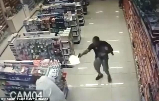 Ban đầu, cảnh sát Rafael Souza cùng vợ và con trai vào hiệu thuốc ở đô thị Campo Limpo Paulista, Brazil, chiều thứ 7 tuần trước. Lúc đó đang là ngày nghỉ của Souza nên anh không mặc đồng phục.