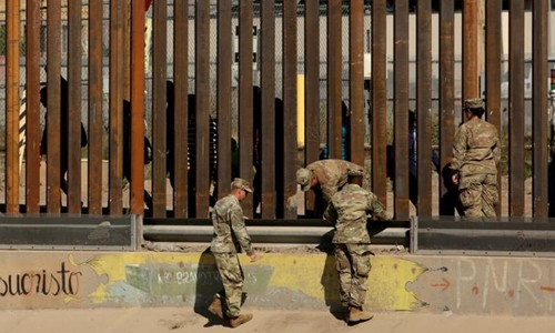 Lính Mỹ tại hàng rào ở biên giới với Mexico tạiEl Paso, Texas ngày 3/4. Ảnh: Reuters.