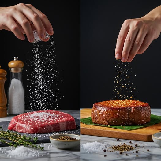 Thịt bò (steak): Muối giúp tạo lớp vỏ giòn và giữ nước cho miếng steak mọng nước.