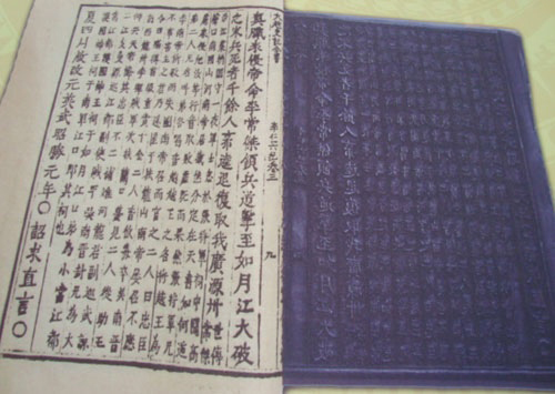 Bản khắc gỗ và bản dập bài "Nam quốc sơn hà" trong Mộc bản triều Nguyễn tại khu trưng bày Trung tâm Lưu trữ Quốc gia IV - Đà Lạt